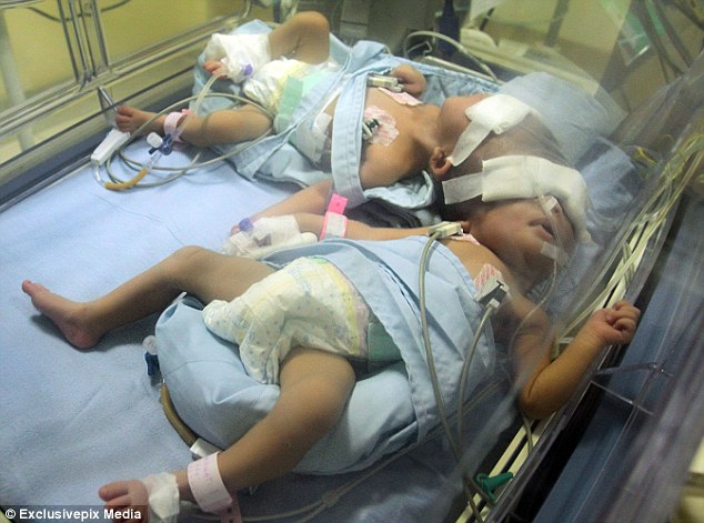 The team said they waited for two years to perform the unprecedented operation to make sure “the babies have a well developed organs and muscles strong enough for surgery.”
